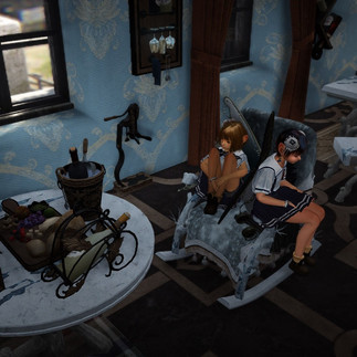 お揃いの服でなかよしこよしな二人。本垢サブ垢両家紋のキャラがいっせいにこの家に入るようだと、寧ろ外に出た方が衛生的にOK牧場だろうね。