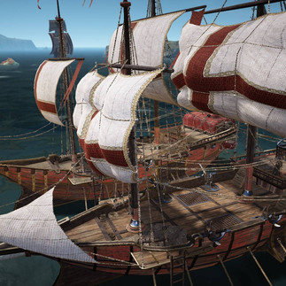 護衛艦は軽帆船の2門より多い4門の大砲を有してるけど、昭川の場合はソロプレイなだけに《一人で船を操縦して、その都度自分で舵から大砲まで走ってって撃つ》という非常にテンヤワンワな感じのアバンギャルドシステムで運航する為、数は意味ないな。